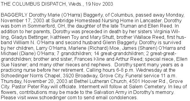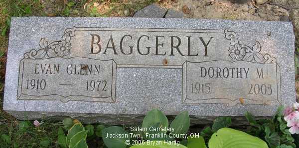 - Baggerly, Evan Glenn, 1910-1972; and Dorothy M., [9 Jun 1915-19 Nov 2003] (Obituary)
