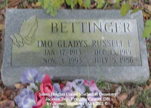 - Bettinger, Imo Gladys, Jan 17, 1913-Nov 4, 1993; and Russell E, Dec 3, 1915-July 5, 1986