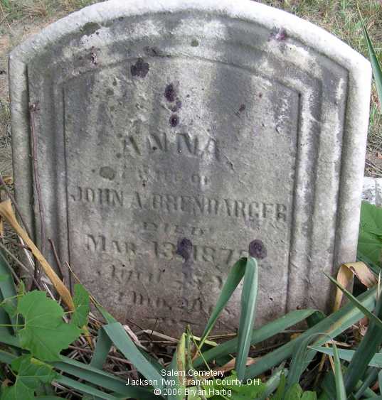 - Anna, wife of John A, died Mar 13, 1873, aged 25 yrs 1 mo 20 days