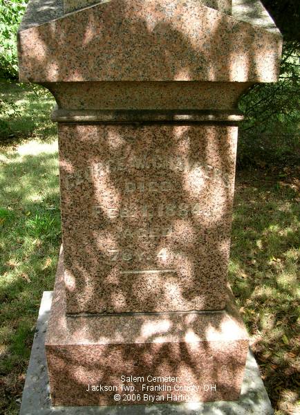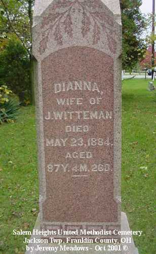 - (Base) Dianna, wife of J, died May 23, 1884, aged 87 Y 4 M 26 D; and John, died Aug 10, 1855, aged 68 Y 9 M 21 D (Inscription)