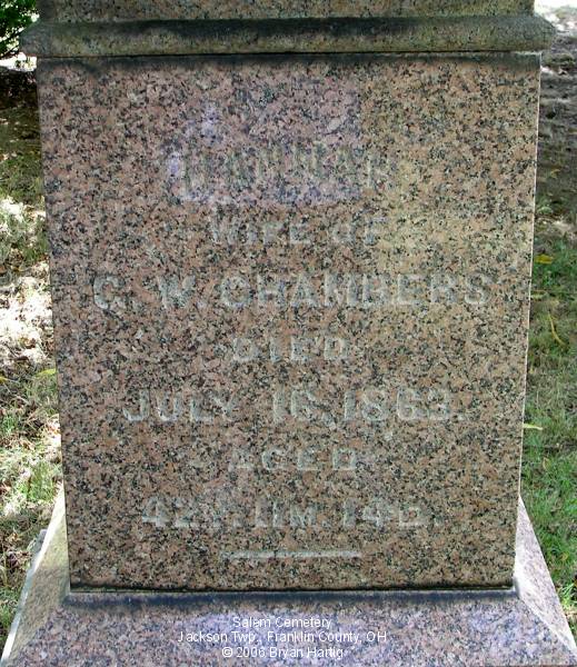 - Chambers, George W., died Feb 1, 1884, aged 70 Y 4 M and Hannah, wife of G W, died July 16, 1863, aged 42 Y 11 M 14 D (Contact Bryan Hartig ()