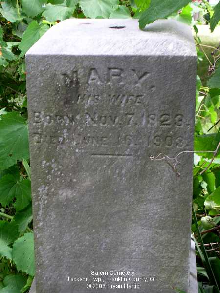 - Mary, wife of T, died Feb 15, 1853, aged 51 yrs 10 mo 13 ds