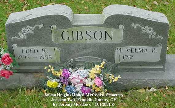 - Gibson, Fred R, 1898-1958; and Velma R, 1912-[blank]