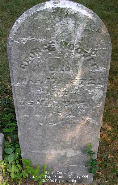 - Catherine, wife of George, died June 28, 1875, aged 78 Y 1 M; and George, died Mar 17, 1872, aged 75 Yrs 9 Mo 9 Ds (Plot)