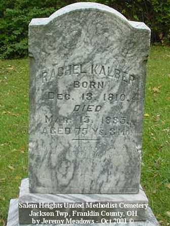 - Kalber, Rachel, Dec 13, 1810-Mar 15, 1885, aged 75 Ys 3 Mo
