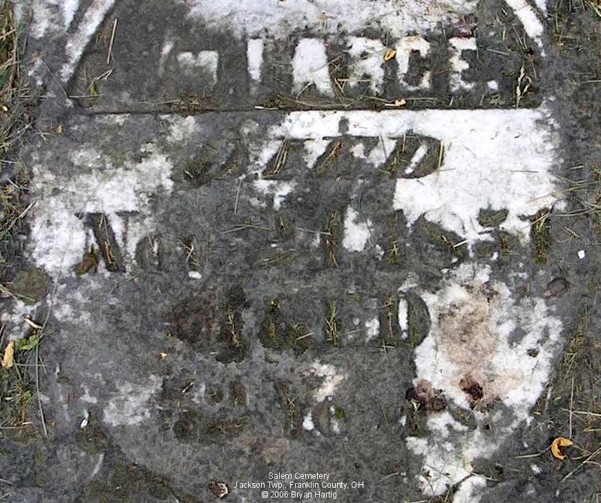 - Sinia, wife of J, died June 1, 1861, aged 71 ys [or 41 ys], 6 mo 17 ds (Whole stone)