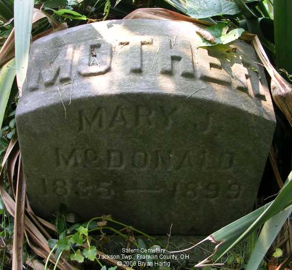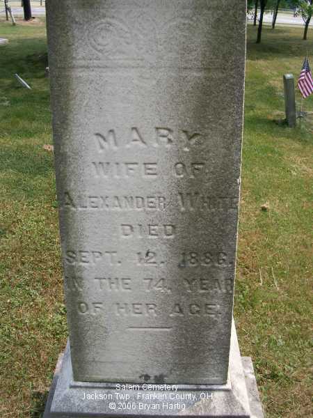 - Alexander, died June 27, 1886 in the 79 year of his age and, on same stone, Mary, wife of Alexander, died Sept 12, 1886, in the 74 year of her age
