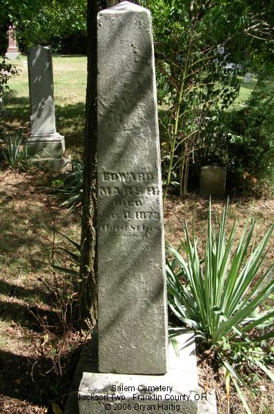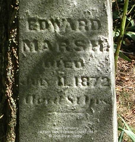 - Marsh, Edward, died July 11, 1872, aged 81 yrs and Sarah, wife of Edwd, died July 7, 1866, aged 76 yrs 6 mo & 7 ds (Whole stone) (Contact Bryan Hartig ()