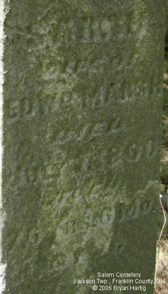 - Warren Jonah, son of George W & Nancy, died Aug 7, 1871, aged 4 Yrs 11 Ms 29 Ds