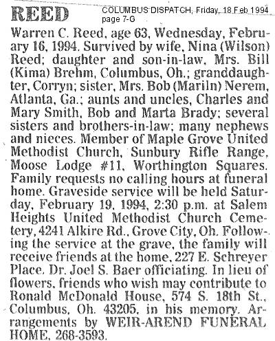 - Warren C., died 16 Feb 1994 (Obituary; no photo)