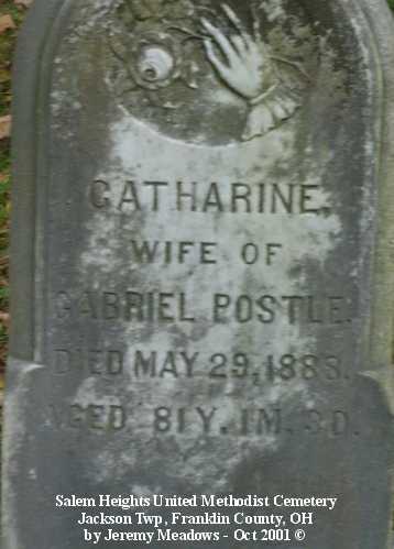 - Postle, Catherine, wife of Gabriel, died may 29, 1888, aged 88 Y 1 M 3 D