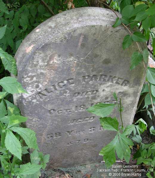 - Alice, died Oct 18, 1865, aged 58 Ys 3 Mo & 7 Ds