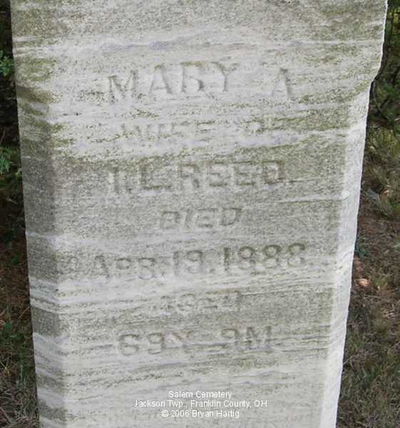 - Isaac L., died July 1, 1890, aged 61y 2m 6d; on same stone, Mary A., wife of I L, died Apr 19, 1888, aged 69y 9m, and Mary Ellen, dau of I L & M A, died Dec 10, 1867, aged 3y 3m 20d