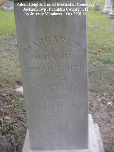 - Margaret, wife of Jonah, died Sep 13, 1900, aged 74 Y 2 M 20 D