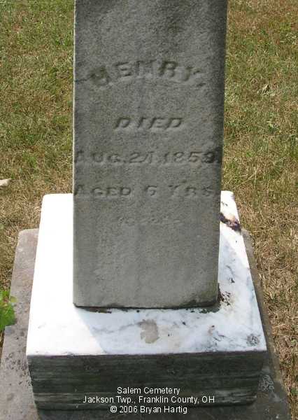 - Children of A & M, Muchner, died Aug 25, 1859 aged 11 yrs and, on same stone, Henry, died Aug 24, 1859, aged 6 yrs